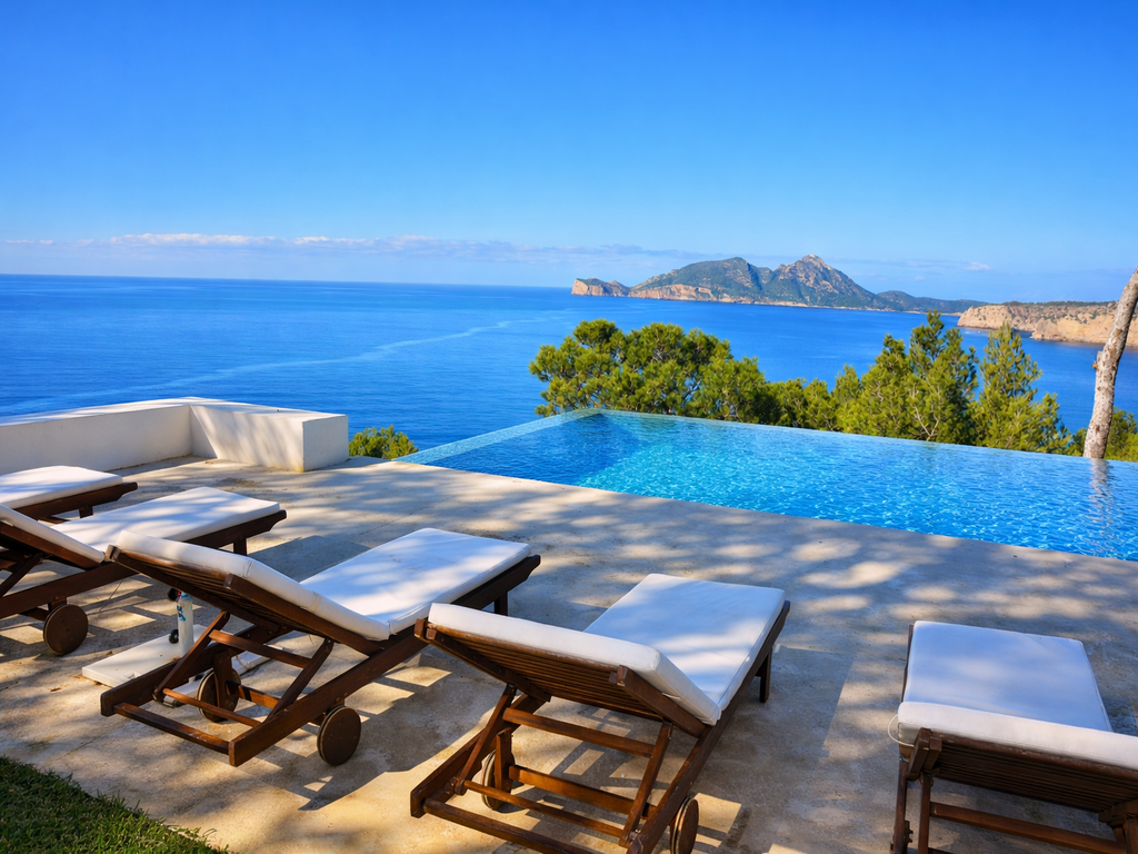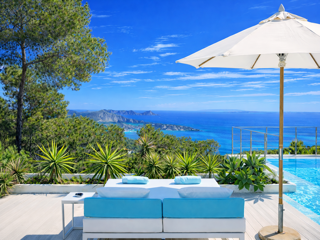 Également à Es Cubells, cette villa associe design contemporain et sérénité méditerranéenne. Ses espaces extérieurs panoramiques et sa piscine privée permettent de profiter pleinement des vues ouvertes sur la mer dans une ambiance de calme et de discrétion.