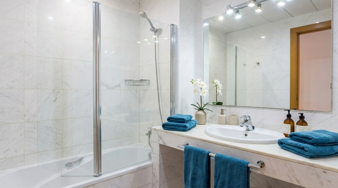 Il comprend deux salles de bain complètes, l’une avec baignoire, l’autre avec douche, toutes deux avec des finitions modernes. Le cœur de l’appartement est un salon-salle à manger spacieux et baigné de lumière naturelle, avec accès direct à un balcon-terrasse privé — idéal pour les