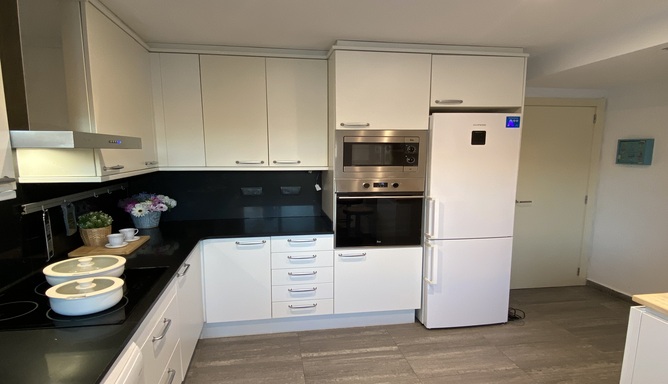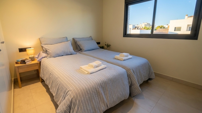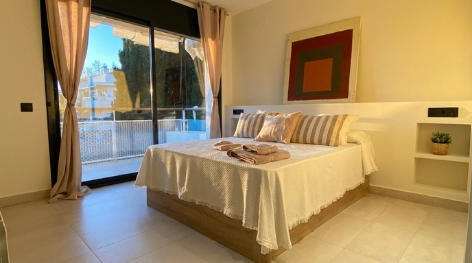 Situé dans un quartier résidentiel paisible à quelques minutes de la plage, La Pedra est l’appartement idéal pour ceux qui recherchent confort, intimité et proximité avec la mer. Il dispose d’un salon lumineux avec accès à une terrasse, d’une cuisine indépendante, de deux chambres doubles, de deux salles de bains complètes et de toilettes d’invités. À l’étage, une terrasse avec espace chill-out et pergola permet de profiter du climat méditerranéen. L’ensemble se trouve dans un environnement soigné avec piscine commune, jardin et parking privé.