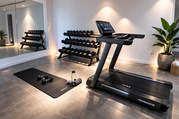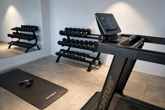 Salle de sport privée entièrement équipée.