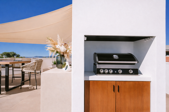 Terrasse privée sur le toit avec barbecue.