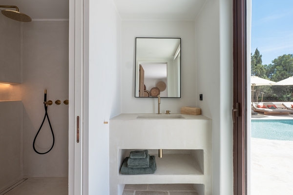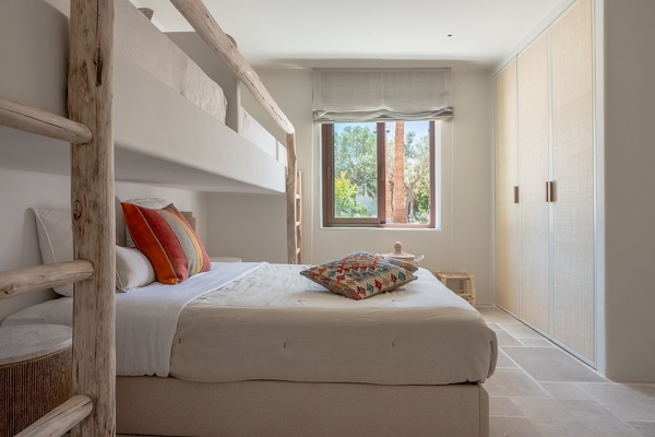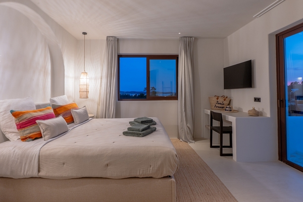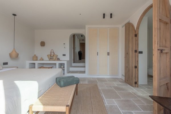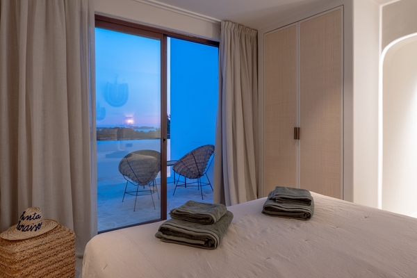 L’intérieur de Villa Serenity a été imaginé pour offrir un confort absolu et un bien-être continu. La propriété dispose de six chambres doubles, toutes avec salle de bain en suite, conçues comme de véritables havres de paix où intimité et tranquillité sont essentielles. Les chambres se distinguent par leurs lits haut de gamme, une sélection raffinée de textiles, la climatisation et de larges baies vitrées laissant entrer la lumière naturelle et ouvrant sur le paysage ibicenco, créant une sensation permanente d’espace et de calme.