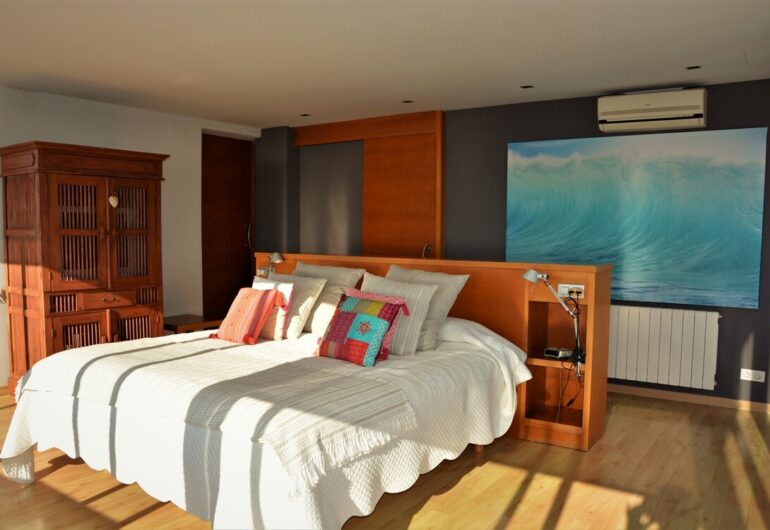 L’emplacement est un autre de ses grands atouts. La villa se trouve à seulement 18 minutes à pied de la plage, avec un accès direct depuis l’escalier de l’urbanisation, à 5 minutes en voiture du centre de Sitges et à 30 minutes de l’aéroport de Barcelone. Bien qu’il soit recommandé de disposer d’un véhicule pour plus de confort, un arrêt de bus est situé à 400 mètres.