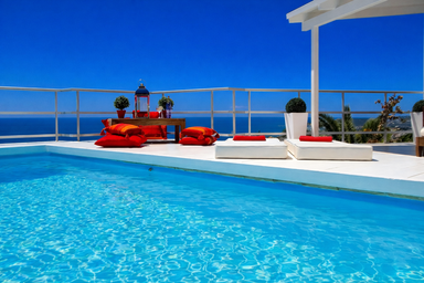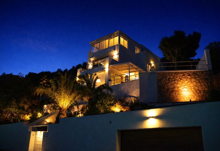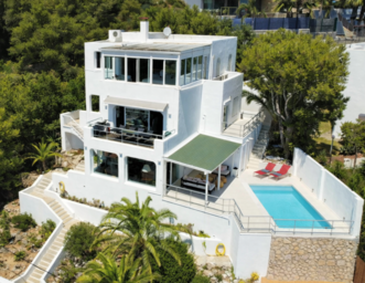 Répartie sur trois niveaux, cette villa a été conçue pour profiter pleinement de la vie en plein air. Ses terrasses, balcons et porches invitent à savourer chaque instant : petits-déjeuners face à la mer, déjeuners dans le patio arrière, apéritifs au coucher du soleil dans l’espace chill-out et baignades relaxantes dans la piscine entourée de verdure. Chaque espace est en harmonie avec la nature et encadre le bleu infini de la Méditerranée, créant une atmosphère unique de détente.