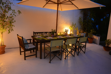 Porche couvert, idéal pour les apéritifs et les couchers de soleil