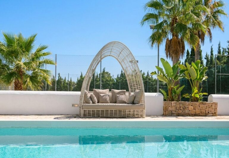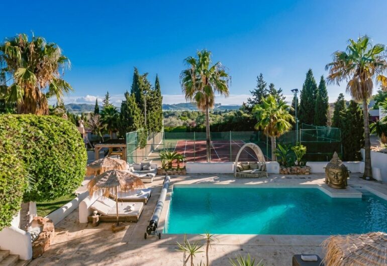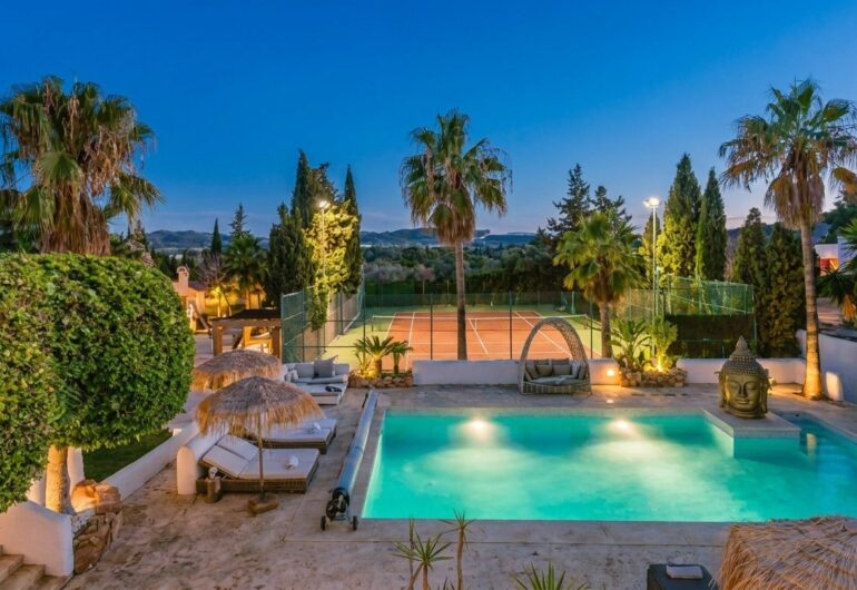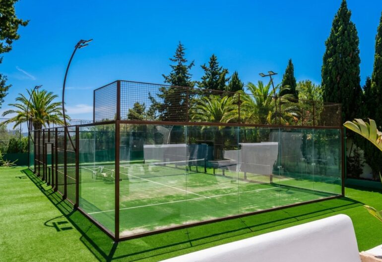 Cette villa de luxe avec terrain de padel à Ibiza présente un design contemporain qui associe le style méditerranéen à des équipements modernes. Avec 7 chambres, 5 salles de bain et une capacité d’accueil jusqu’à 16 personnes, Villa Camel est idéale pour les grands groupes ou les familles. Elle dispose de vastes espaces de vie, d’une cuisine entièrement équipée et de zones extérieures pour profiter du soleil et du paysage. Le terrain de padel privé est l’un des nombreux atouts qui font de cette villa un lieu unique pour les amateurs de sport et de détente.