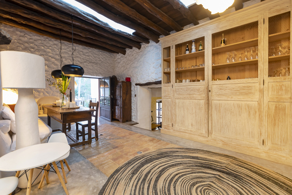 L’intérieur de Can Nikita a été conçu pour offrir une expérience de confort absolu. La villa dispose de six chambres avec salle de bain en suite, réparties entre la maison principale et deux maisons d’invités, toutes avec un accès direct à l’extérieur. Chaque chambre est pensée comme un espace de repos privé, où la lumière naturelle, les matériaux nobles et le lien avec la nature favorisent un sommeil profond et réparateur. La suite principale comprend également un salon privé, idéal pour ceux qui recherchent un supplément d’intimité.