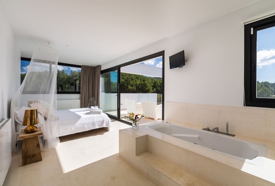 À la Villa Ibiza Can Pep Sa Guaita, chaque espace est conçu pour vous offrir confort, luxe et intimité. Profitez d’une piscine privée, d’un jacuzzi extérieur avec vue imprenable, de vastes terrasses pour vous détendre et de jardins méditerranéens magnifiquement aménagés. Tout cela dans un cadre paisible, parfait pour se déconnecter complètement.L’intérieur de la villa est tout aussi impressionnant avec ses espaces lumineux et spacieux, son salon panoramique offrant une vue exceptionnelle, sa cuisine entièrement équipée et ses huit grandes chambres, synonymes de confort absolu. Chaque détail est pensé pour vous assurer un séjour exceptionnel entouré de luxe et de facilité.