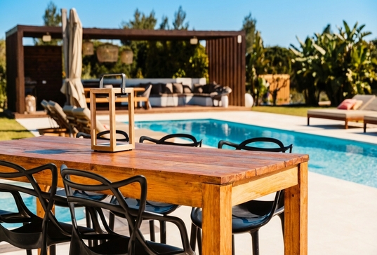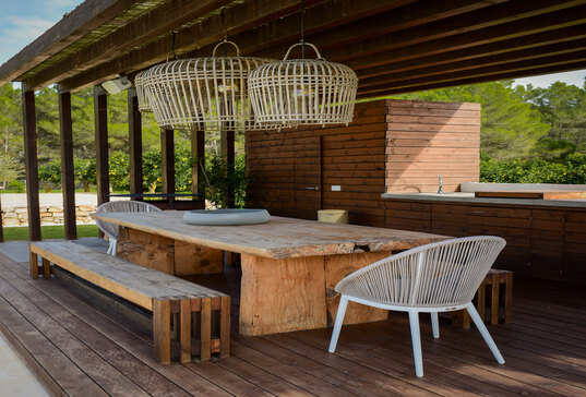 Salle à manger extérieure : grande table pour repas en plein air